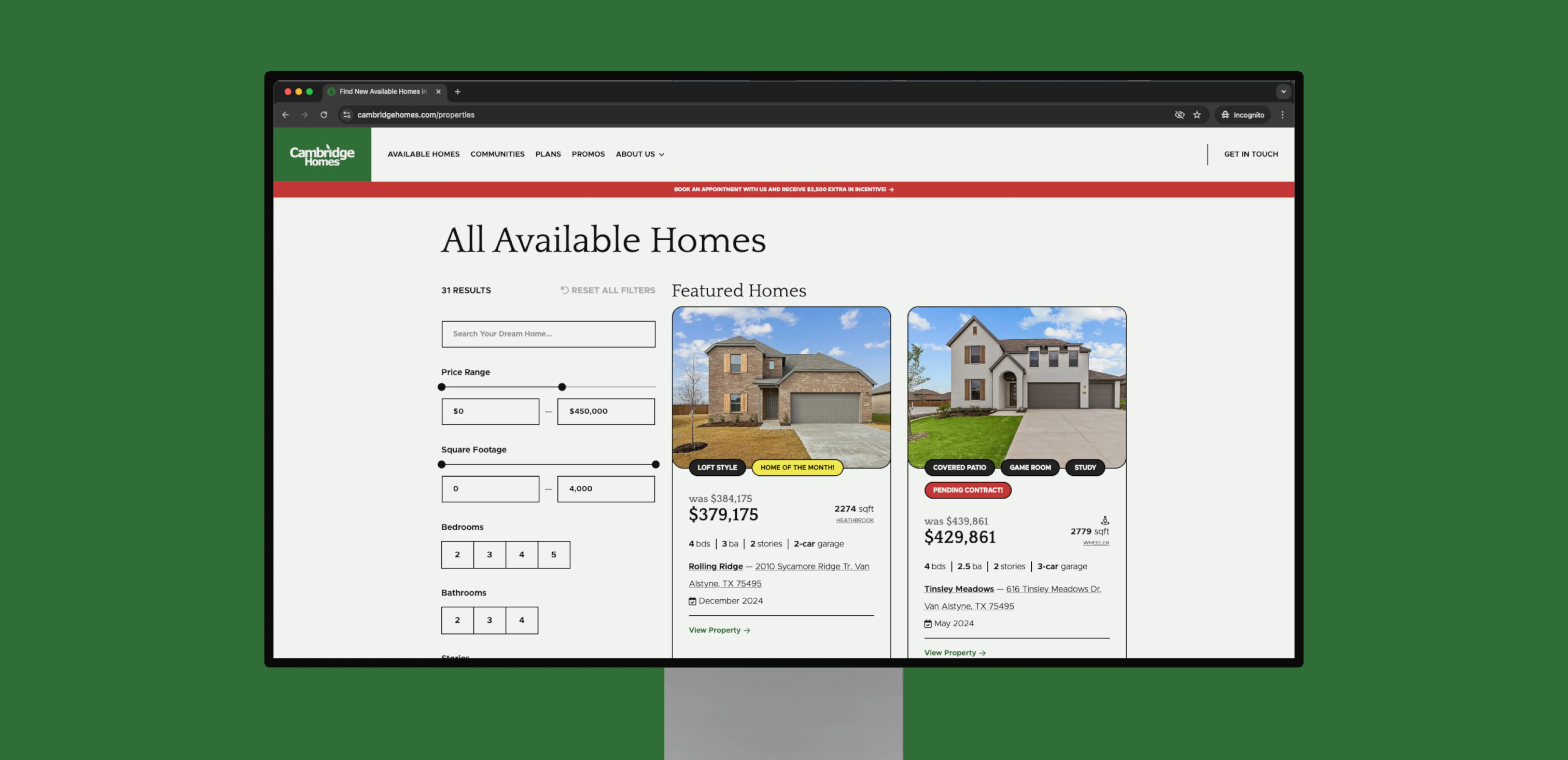 Homebuying is deeply personal, and Cambridge Homes understands that each build is more than just a house — it’s a future filled with possibility. With a legacy of craftsmanship and a commitment to the communities they serve, Cambridge Homes needed a digital presence that reflected their expertise and approachability. Wild Places developed an intuitive, visually rich website that simplifies the homebuying journey while showcasing Cambridge’s range of communities, floor plans, and move-in-ready homes. Through a seamless balance of storytelling and functionality, the new platform empowers buyers to explore, dream, and find a home that fits their lives while also providing Cambridge with reliable, instant leads that drive business growth and revenue.